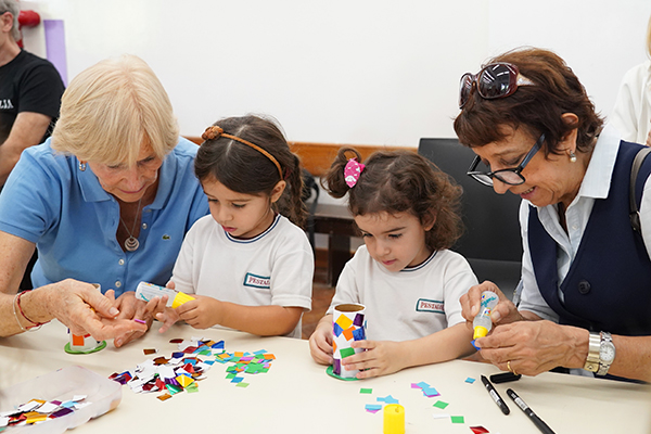 En cada encuentro, nietos y nietas junto a sus abuelos y abuelas llenaron el SUM de alegría, sonrisas y abrazos. Se destacó un hermoso despliegue de creatividad e imaginación, reflejado en la singularidad de cada una de las canastas.