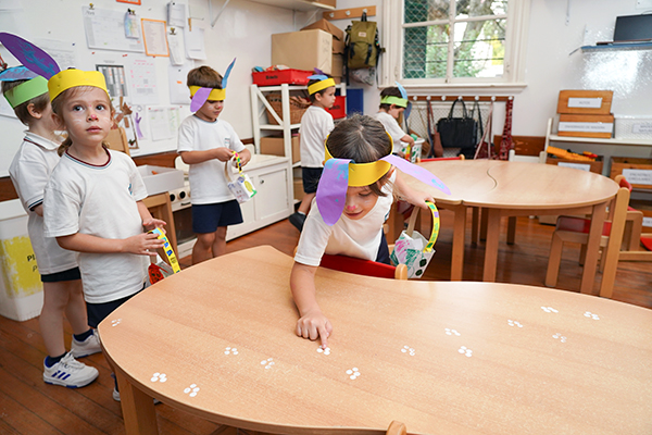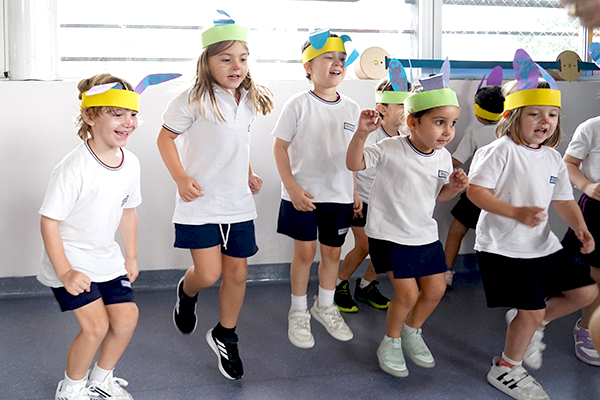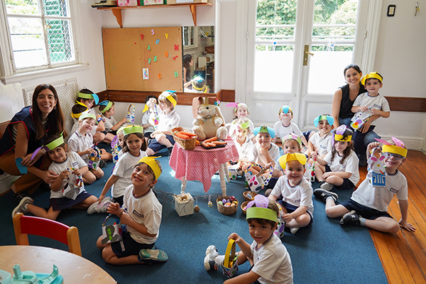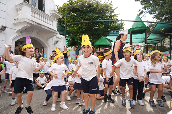 Los chicos y las chicas se prepararon para el festejo con sus coloridas vinchas de conejo y se reunieron para bailar y cantar canciones de esta tradicional celebración.