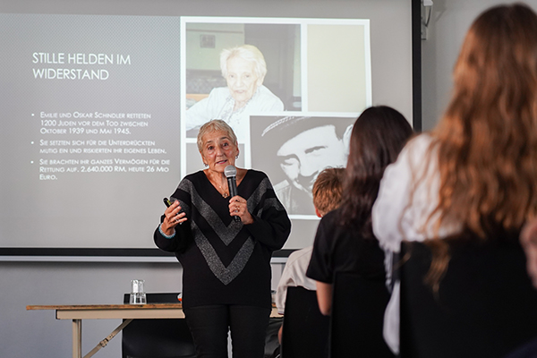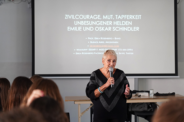 El pasado 13 de abril, recibimos en nuestro colegio a la historiadora Erika Rosenberg, investigadora y biógrafa de Oskar y Emilie Schindler, quien compartió un encuentro con estudiantes de 4º año.