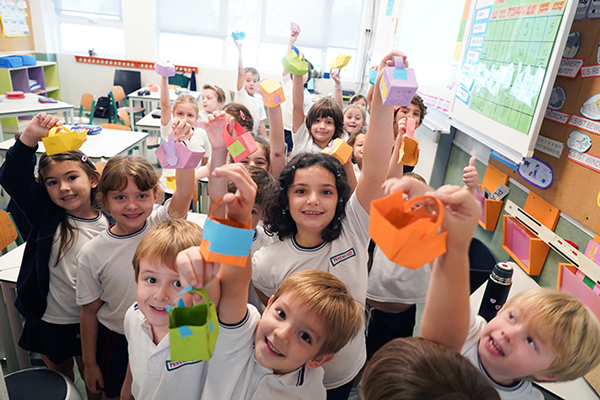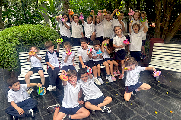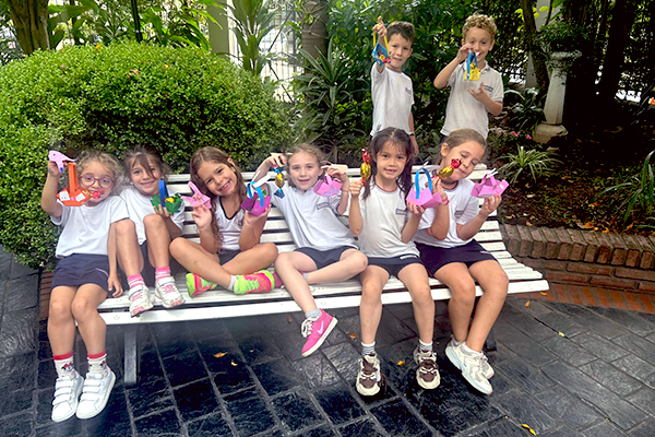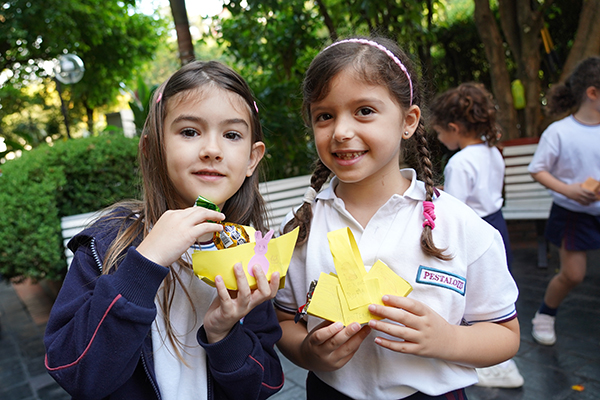 Con mucha dedicación, los alumnos y las alumnas de 1er grado armaron sus canastitas para guardar los huevitos que trajo el Osterhase.