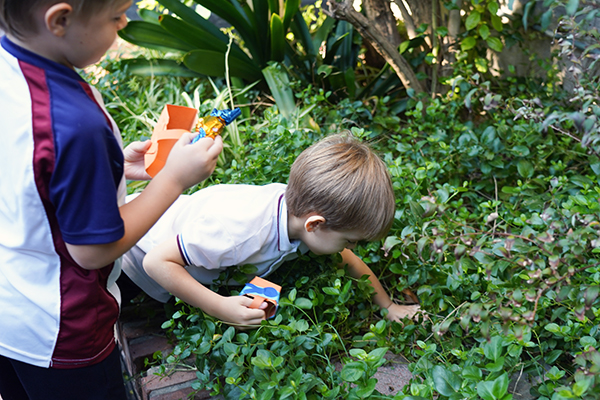 Luego salieron a buscarlos, recorriendo el jardín con entusiasmo y alegría en una divertida búsqueda llena de sorpresas.